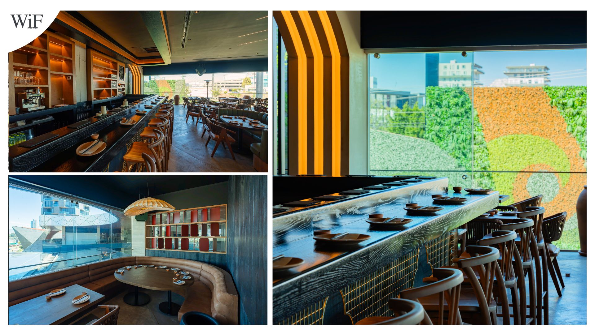 Se trata de un espacio de gran diseño moderno, luminoso, con una paleta de colores que mezcla la madera con tonos cálidos y una gran barra donde sucede el omakase, pero con toques mexicanos, tal como lo encapsula su nombre como un juego de palabras: Okasanta “Okasan” (madre en japonés) y hoja santa, el ingrediente profundamente arraigado en la cocina mexicana.