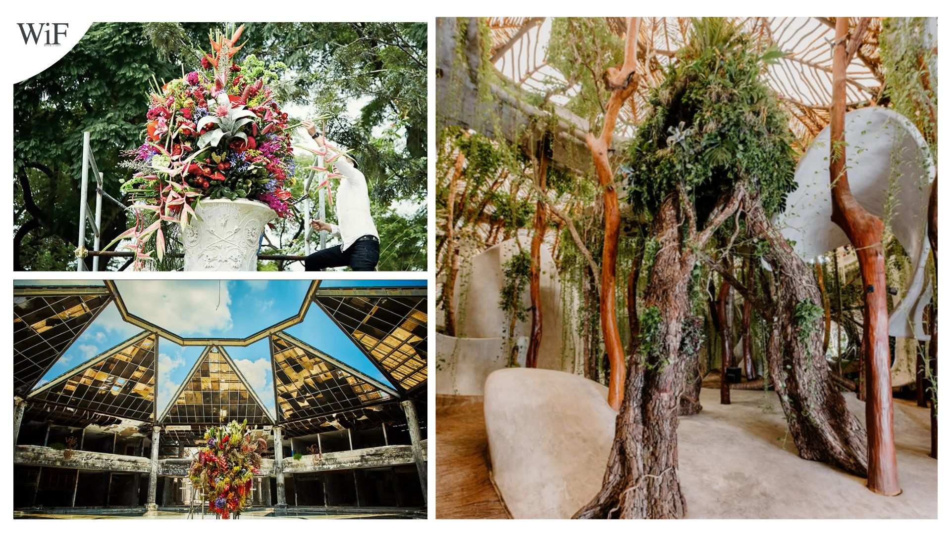 También participó en el Abierto Mexicano de Diseño, instalando esculturas botánicas en la Alameda Central de la Ciudad de México, utilizando los jarrones monumentales del porfiriato para los arreglos florales. Y qué decir de la instalación que realizó en el abandonado centro comercial del Estado de México llamado Acrópolis, donde creó la escultura monumental de casi tres metros de altura con dalias, heliconias, amaranto, nopales y una corona de agave.