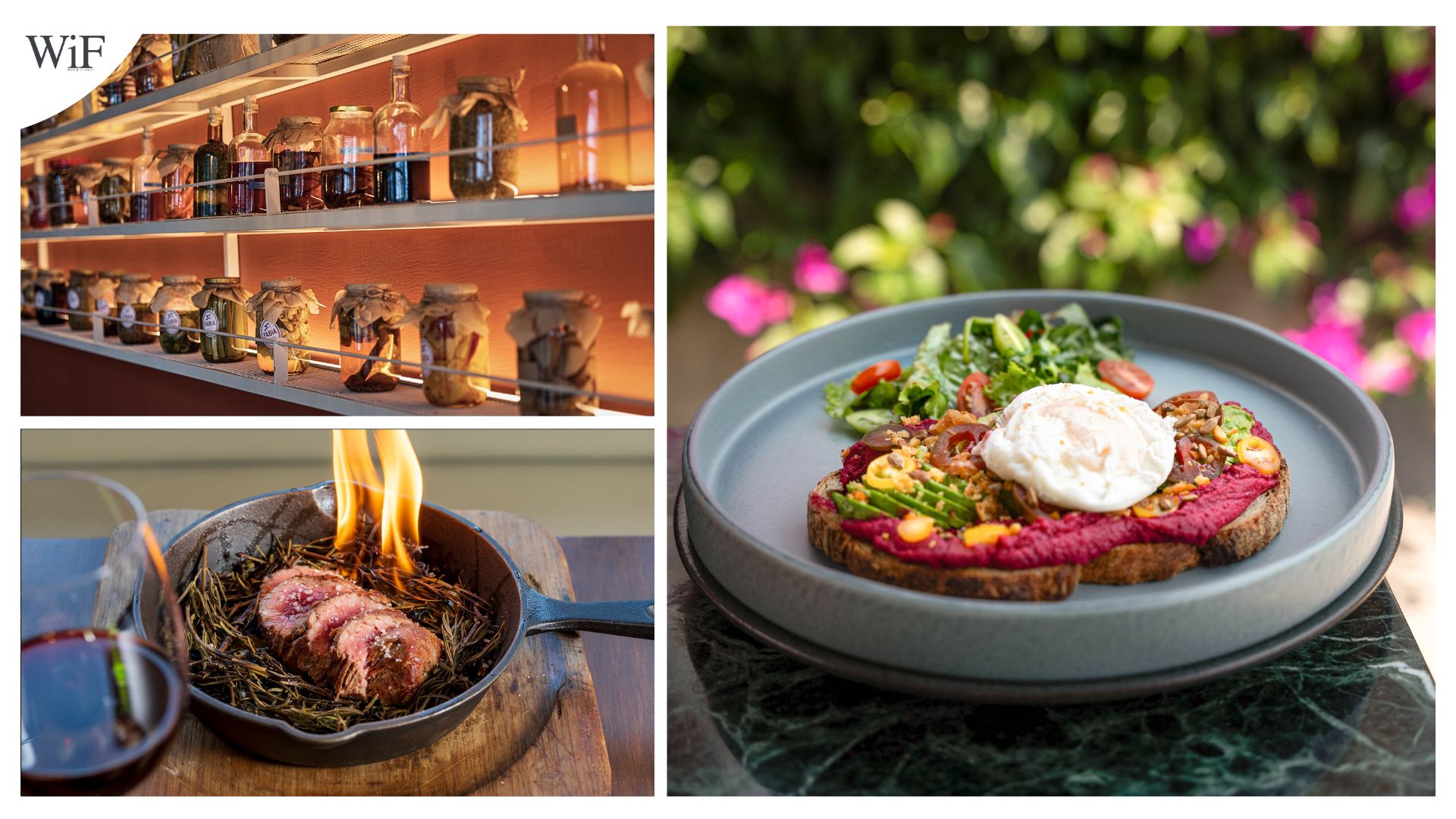 El espacio es, por sí mismo, una razón para volver. Un árbol monumental al centro, ventanales que inundan de luz, buganvilias trepando entre muros blancos y mesas de madera que respiran calidez. Es el tipo de lugar donde el brunch se alarga sin culpa, las conversaciones fluyen y los aromas de hierbas frescas te recuerdan que comer también puede ser una forma de meditación.
